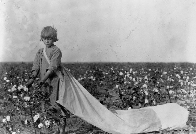 10 Oct 1916, Comanche County, Oklahoma — A child carrying a sack picks cotton in Oklahoma. — Image by © CORBIS