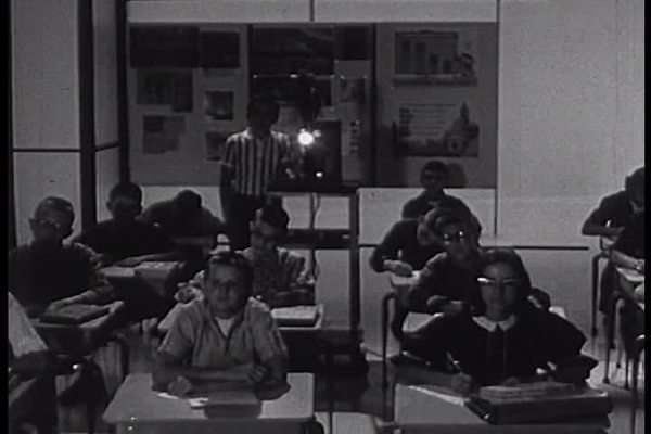 Remember the rare treat of a film in stead of a regular class? What was not to like? The projector clickety-clacking and… and! the lights out In a classroom. (You could see the corridor all lit up, but inside, as dark as a movie theatre.)